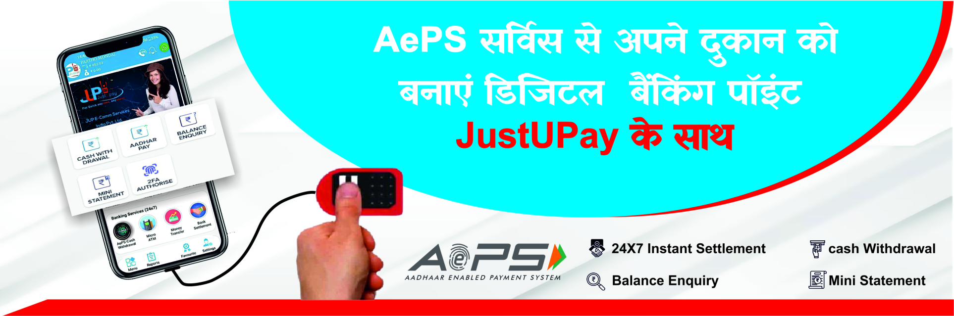 Seamlessly conduct a variety of banking transactions using your Aadhaar number. Withdraw cash, check balance, and perform other banking tasks with ease through JustUPay's convenient AePS services.